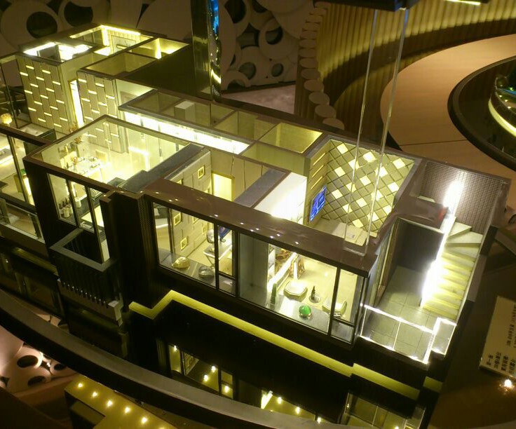 采用透明亞克力制作、內部按比例制作家私布局、達到真實仿真效果。